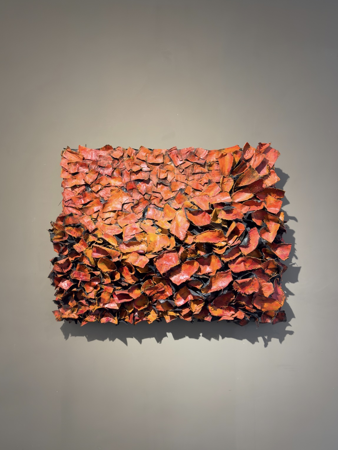 Not bound by sketches he uses a written description of shape, texture, and color as a flexible outline for improvisational exploration.