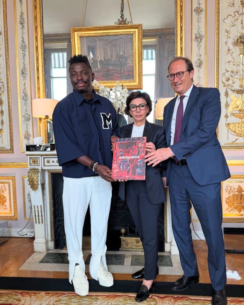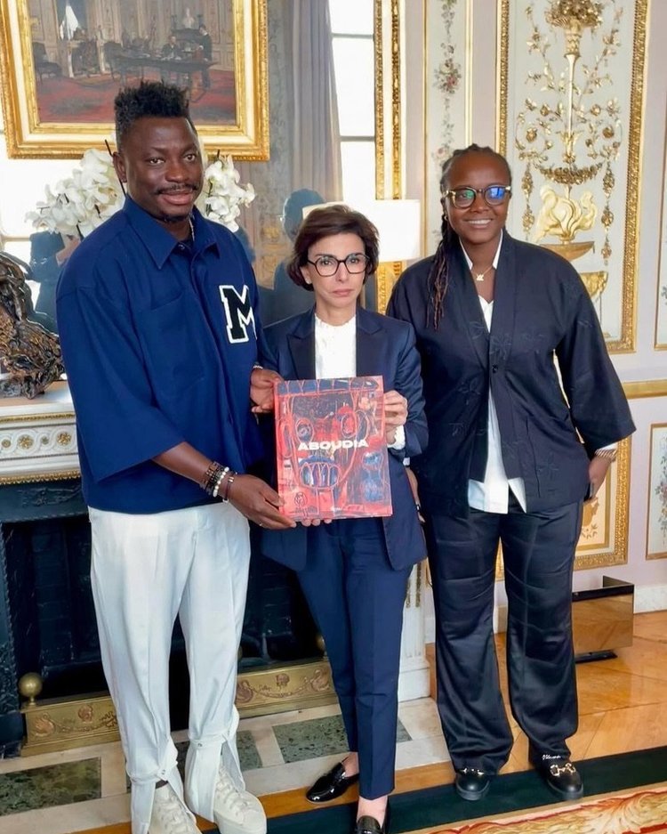 Ivorian artist is received by the French Minister of Culture Rachida Dati and Bruno Fuchs, député du Haut-Rhin, of Commission of Foreign Affairs In Paris. He was honoured along with several other important figures in African Arts and Culture, including Nesmonde Dokoui.
