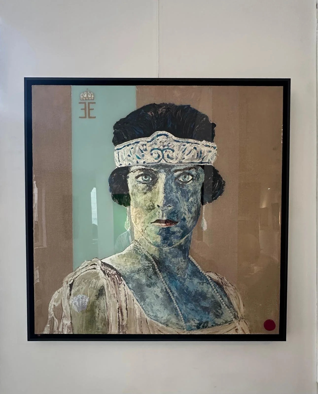 Queen Elisabeth 83 x 84 cm mixed media on aluminium
